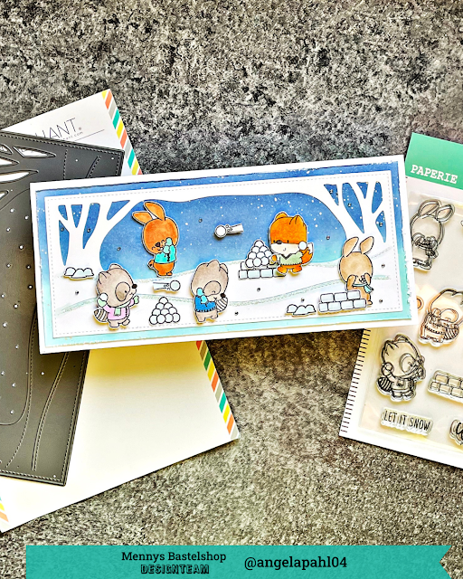 Für meine heutige DT Karte für Mennys Bastelshop habe ich mich für eine Karte mit Stempeln aus dem neuen Lawn Fawn Release entschieden. Die Motive sind einfach zu süß.♥ Außerdem habe ich eine Stanze von Heffy Doodle verwendet.♥